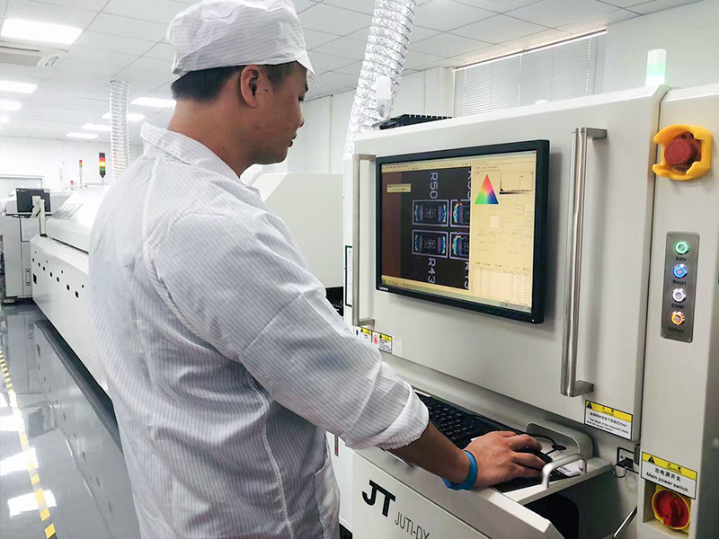 車間爐前設(shè)立QC進(jìn)行不良篩選,爐后 PCBA目檢,PCBA進(jìn)行光學(xué)檢測(cè),人工再抽檢70%,13溫區(qū)回流焊每款產(chǎn)品獨(dú)立設(shè)置溫度。